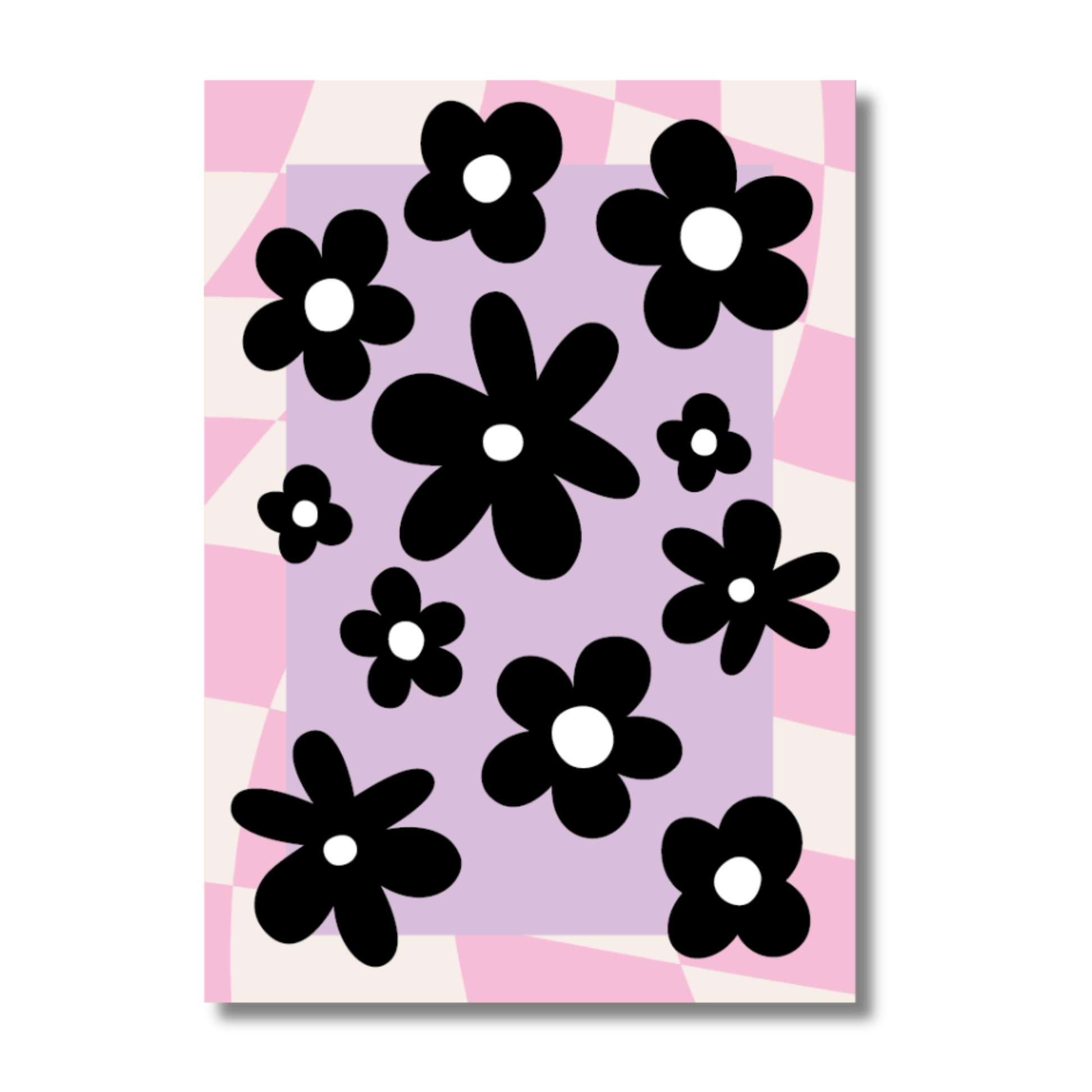 Prêt à donner vie à votre propre chef-d'œuvre ? Cette affiche à peindre met en scène des fleurs graphique sur un damier prêt à accueillir vos coups de pinceau !